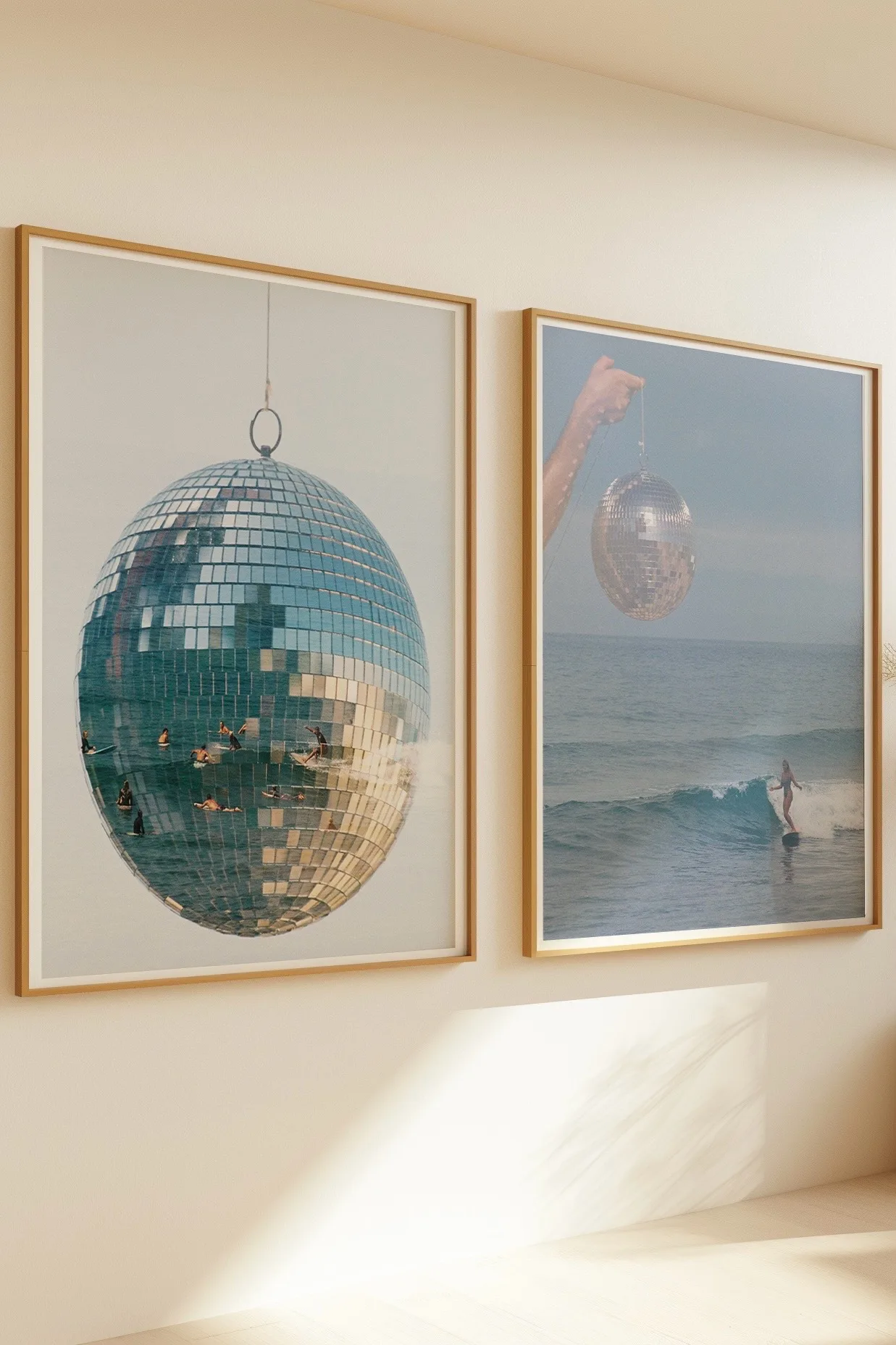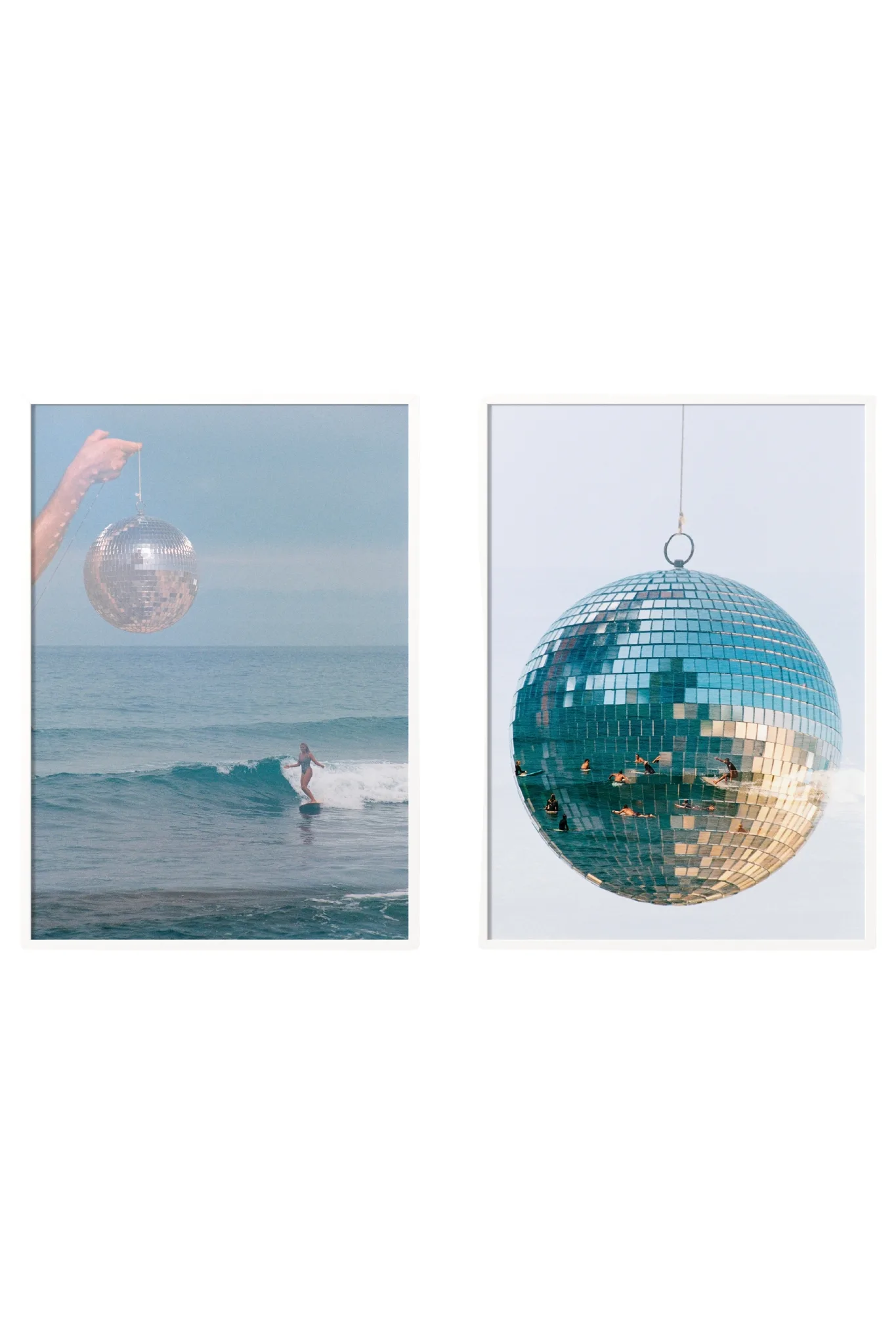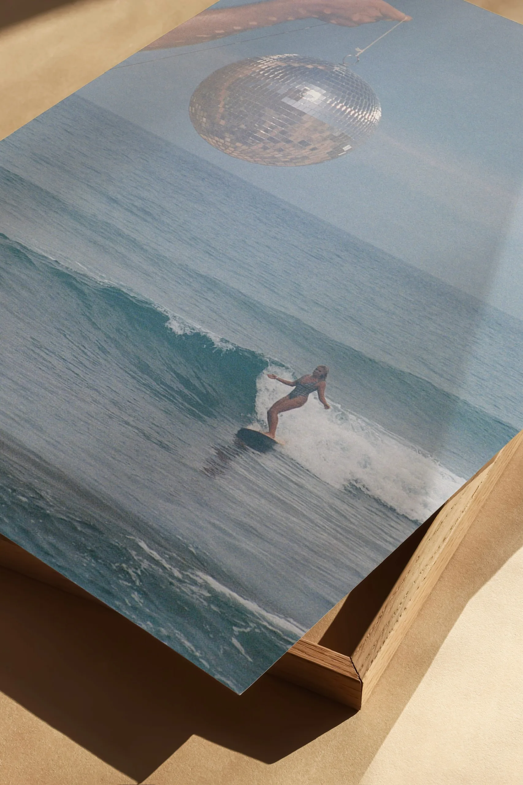 Collector’s pairing curated by Alexandra, blending the sun-soaked spirit of 1970s beach culture with the electric glamour of Studio 54. Captured on analogue film and printed on textured matte archival paper, each piece carries the dreamy nostalgia of a Californian disco era. Designed to live together as an unframed collector’s set, this duo evokes the energy of an era reimagined through a surreal lens. Gallery-grade oak frames are offered separately on individual art print pages. Every set sold supports the Ovarian Cancer Research Foundation with a $1 donation.